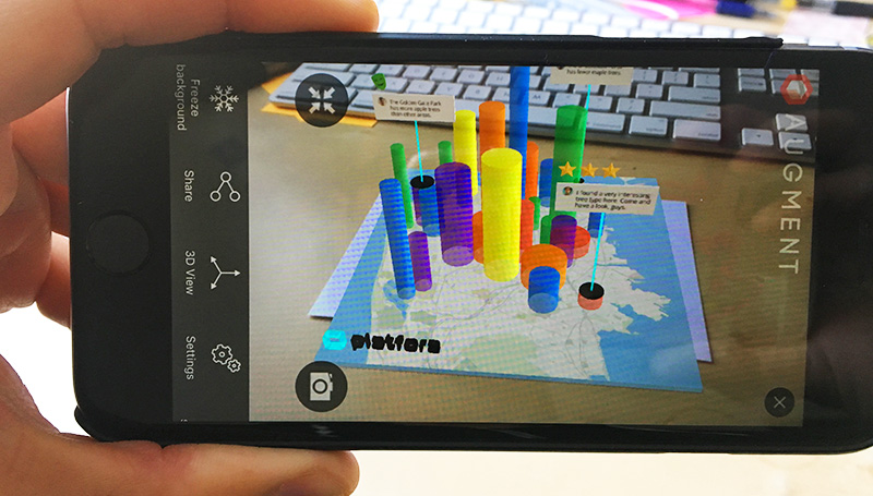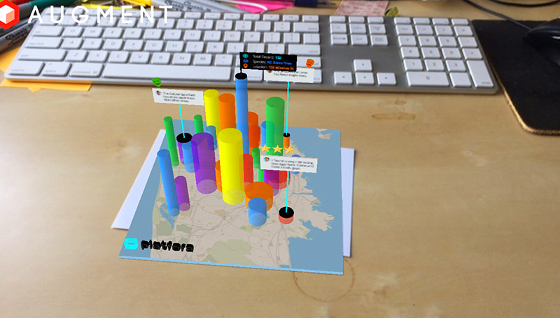 This is a proof-of-concept project, exploring AR based 3D interaction paradigm on traditional GUI based data visualization platforms, in order to enhance interactivity and collaboration.