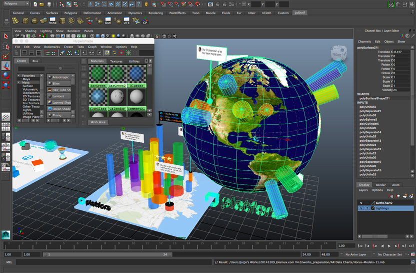 For the POC perspective, I only chose two data visualization types to model: Bar Chart and Geo-Map. Meanwhile, I also created a bunch of 3D UI elements, like icons, and controls.