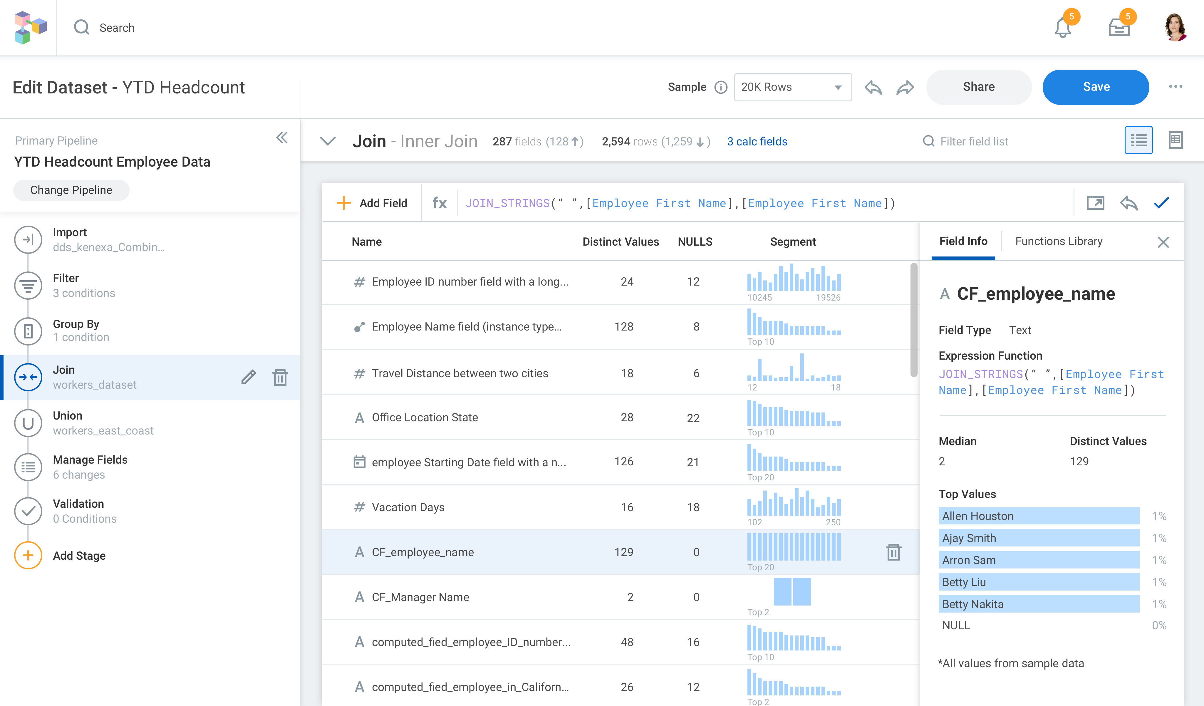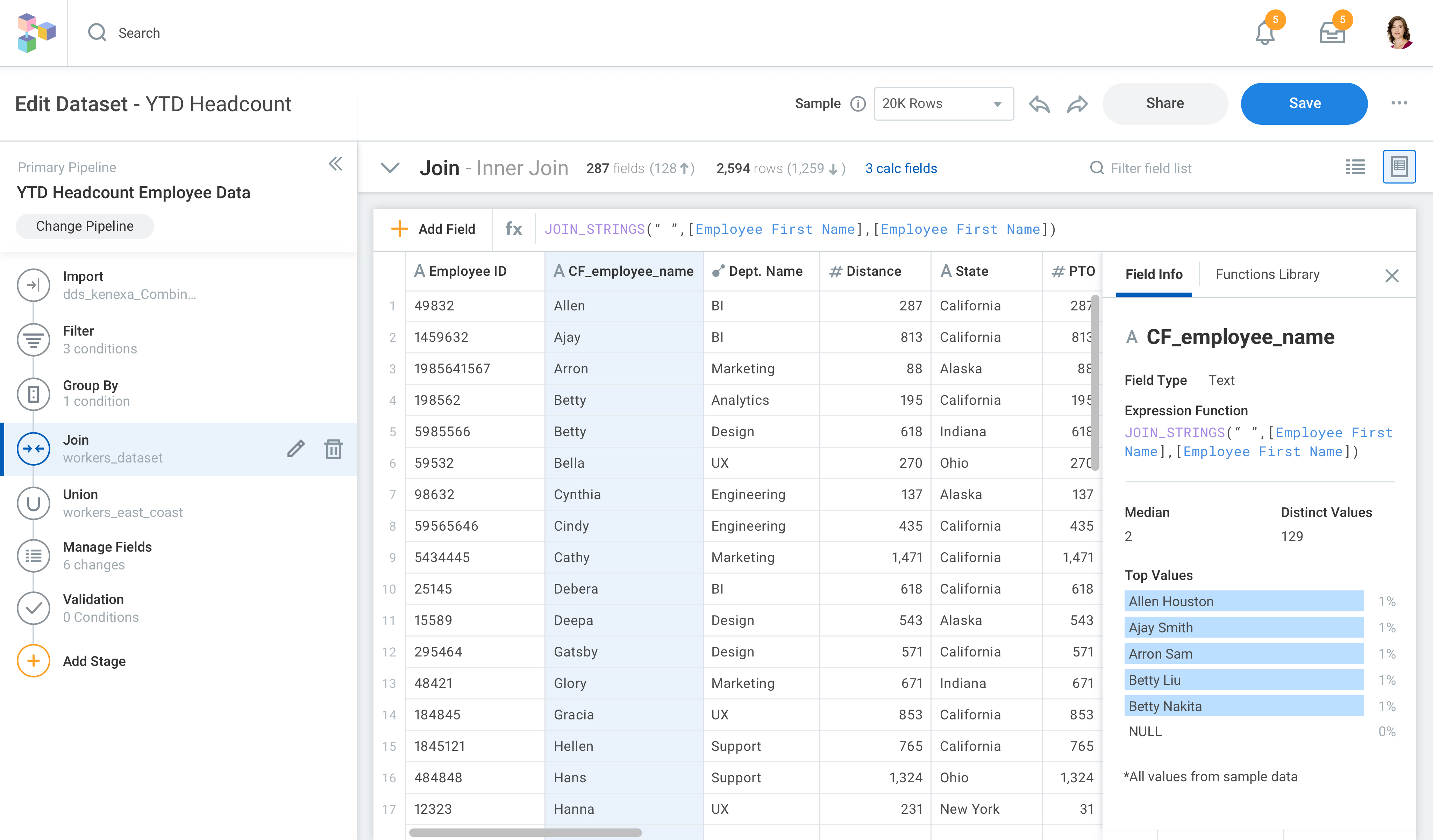 6.Data Table View with Expanded Transformation Stages Panel