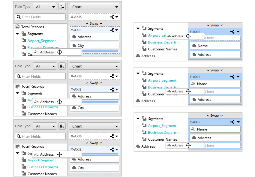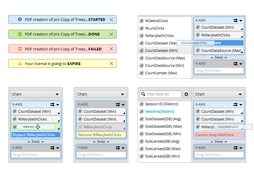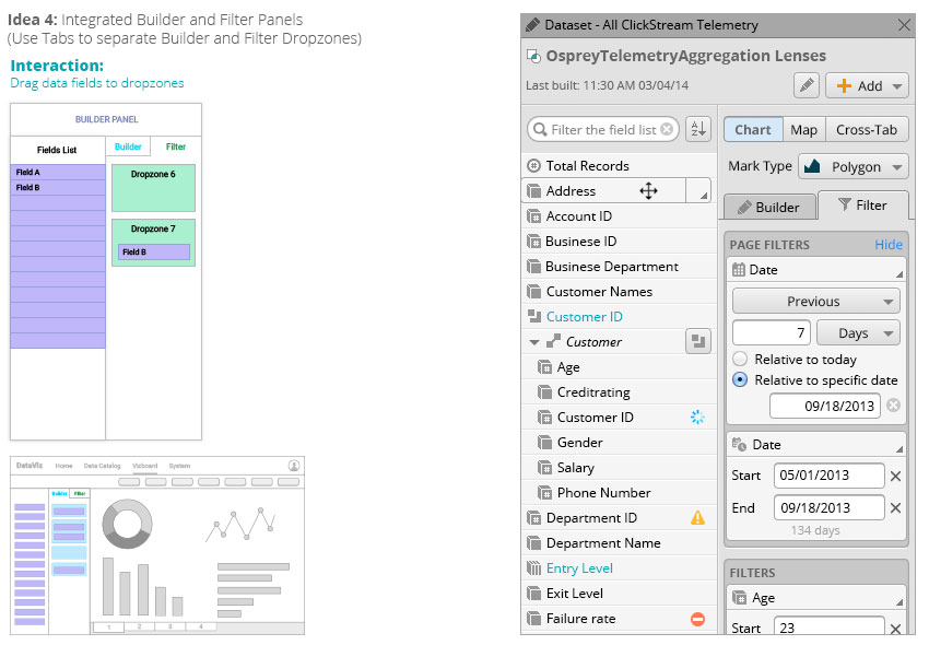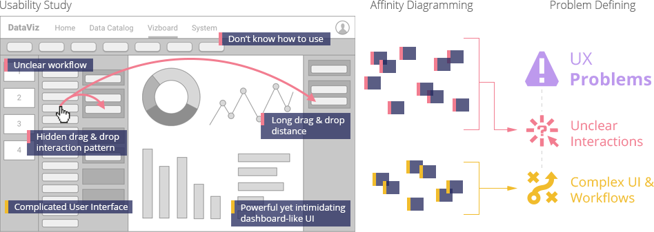 Project summary of how I utilized various methods to simplify the drag-and-drop based, ad-hoc interactive data analytics UI, provided better onboarding experience for novice users, shortened their learning curves, and enabled self-learning and self-service.