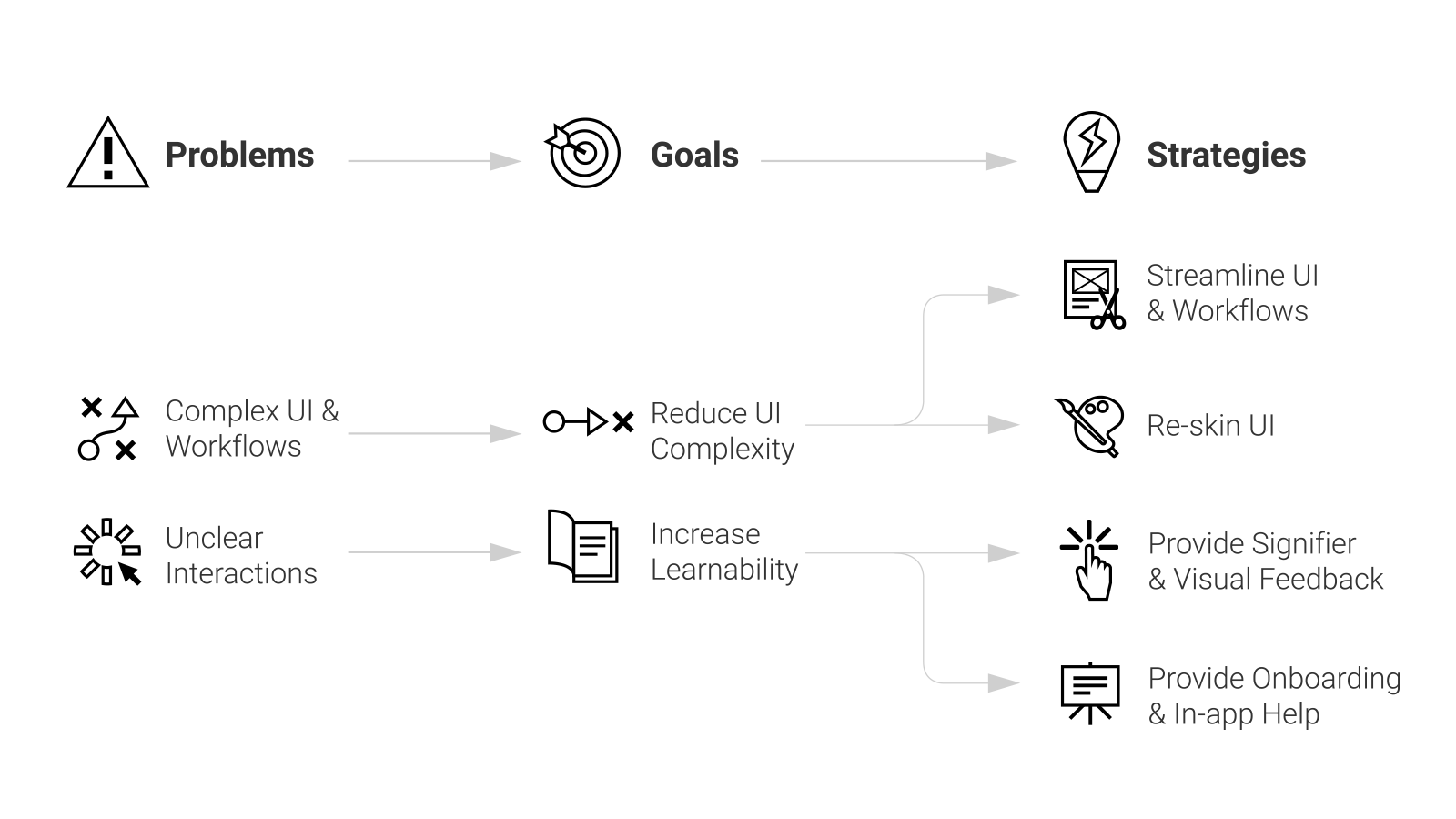 After the design research, two major UX goals I want to achieve from the UX enhancement design: 1.Reduce UI and workflow complexity. 2.Increase the product's self-learnability.