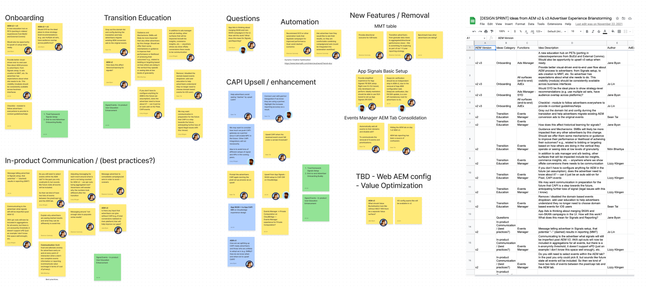 Next, I summoned cross-functional team members like content strategists, engineers, PMs, and designers across business teams to brainstorm ideas in a design sprint. We applied affinity diagramming to group solutions into different themes and voted for the priorities.
