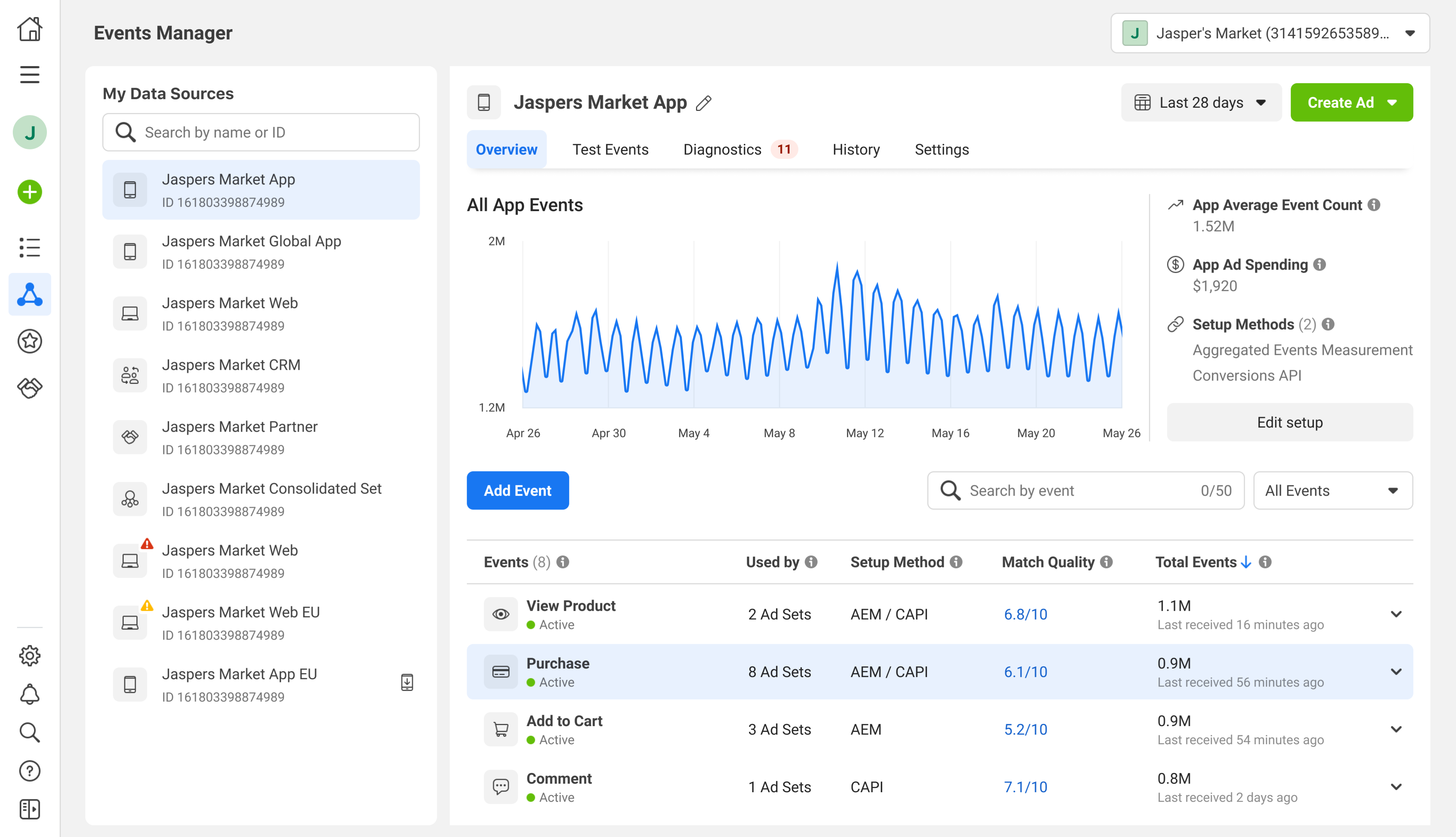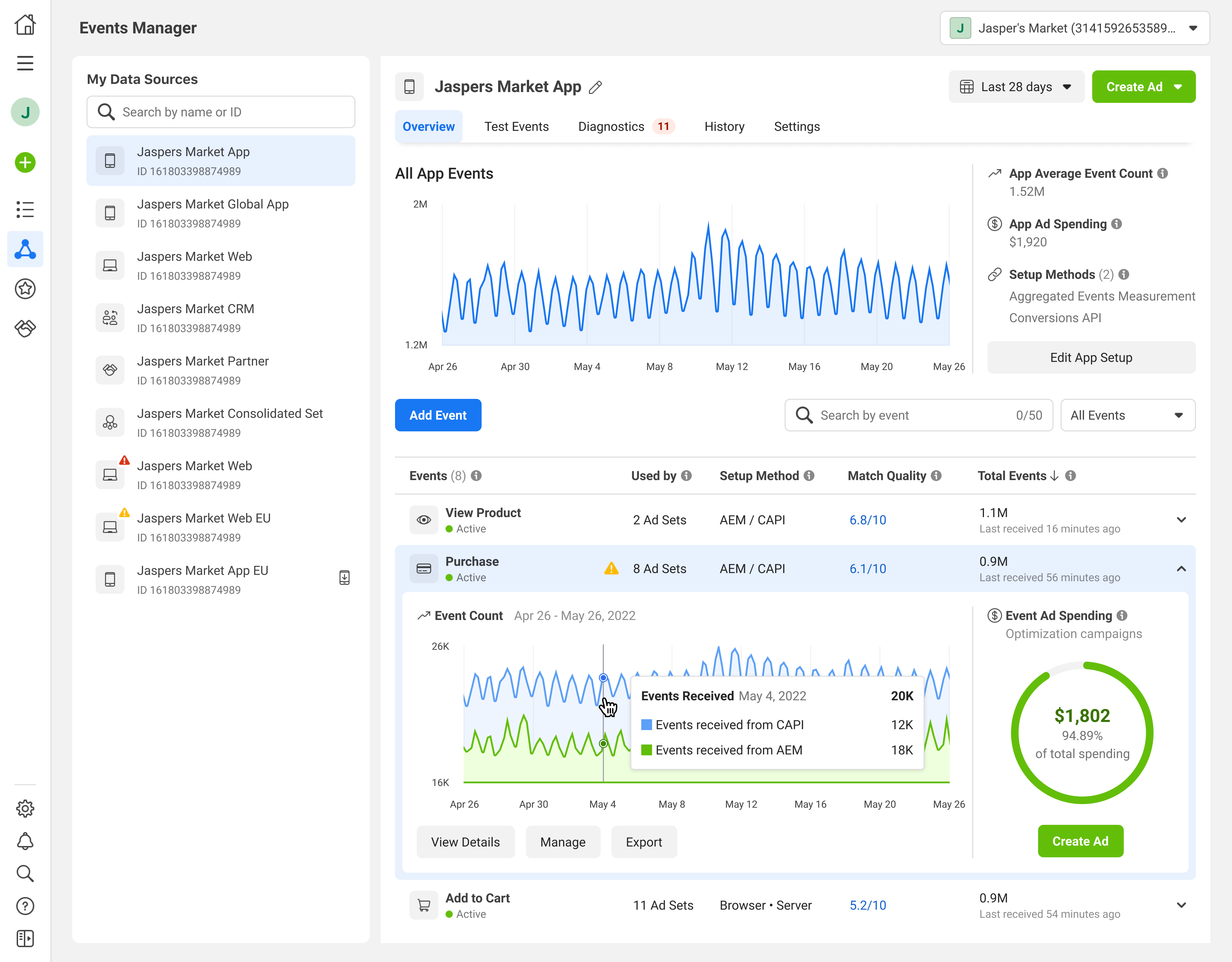 15.She can also expand the event row to see the data breakdowns, with corresponding ad spending.