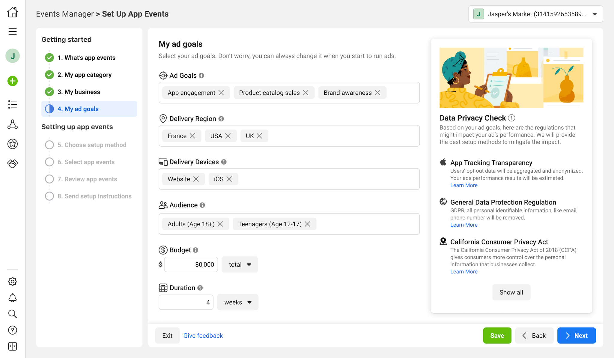 5.The advertiser inputs her ad goals in this step, and our system will predict the corresponding data-sharing regulations