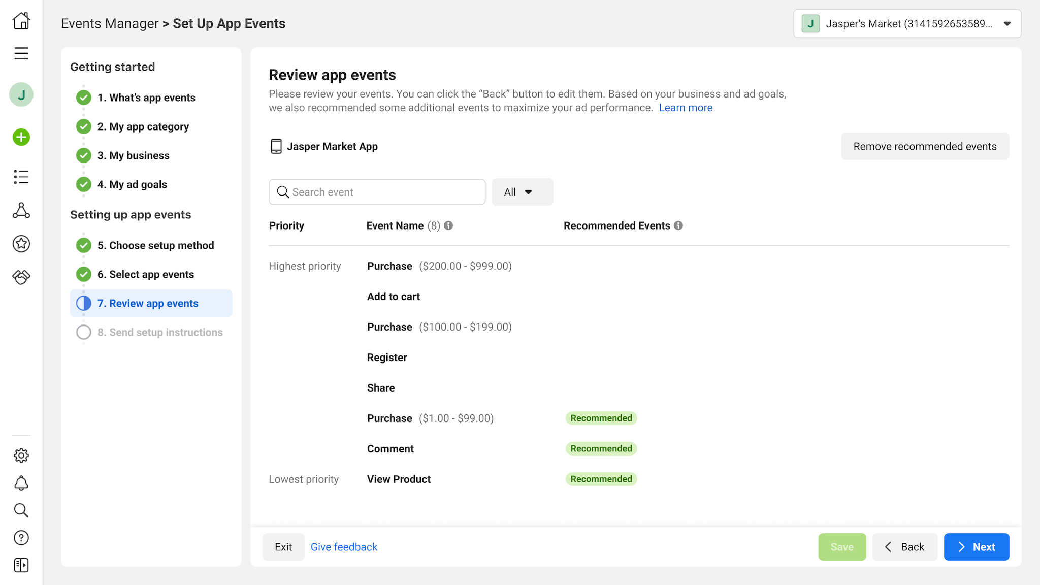 7.In this step, she will have the opportunity to edit the system-generated app events.