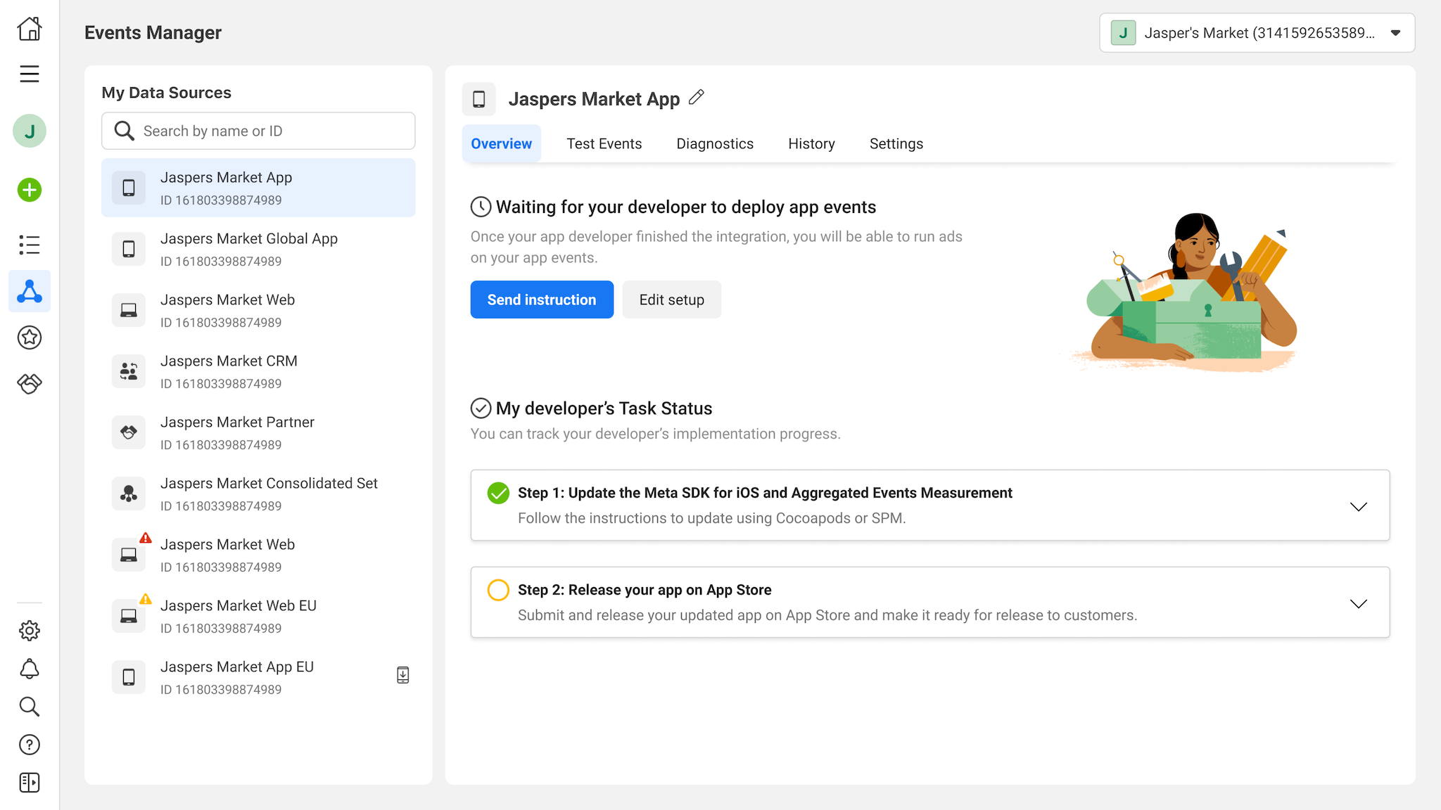 13.When she goes back to the landing page, she could check her developer's current implementation status.