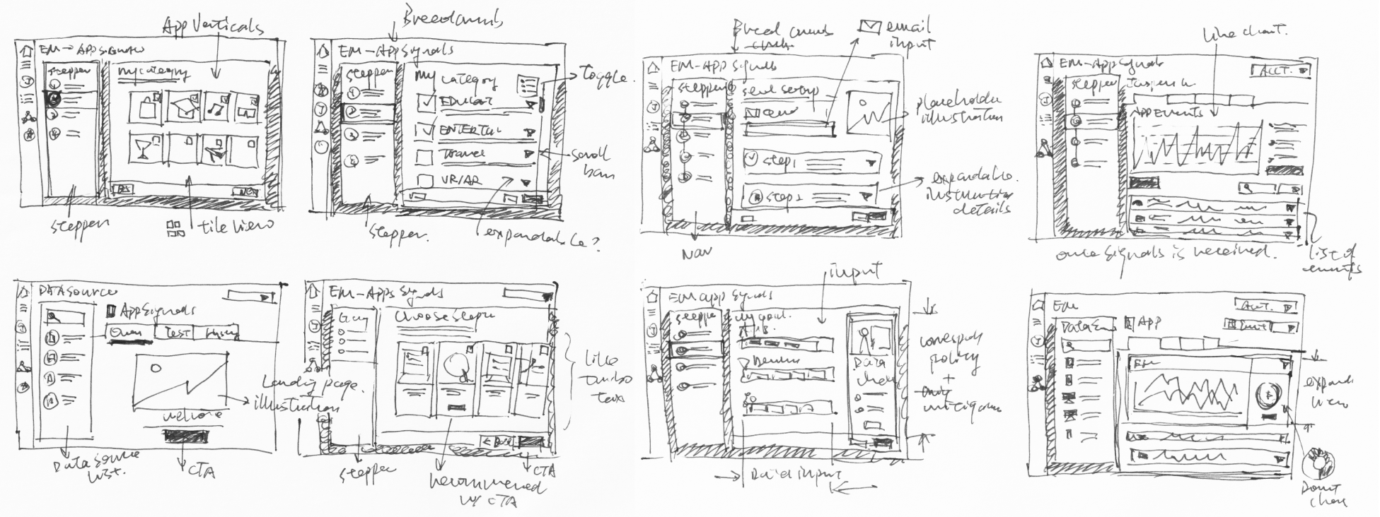 I use pen-and-paper sketching to brainstorm a variety of layout options, before creating the high-fidelity mockups and prototypes.